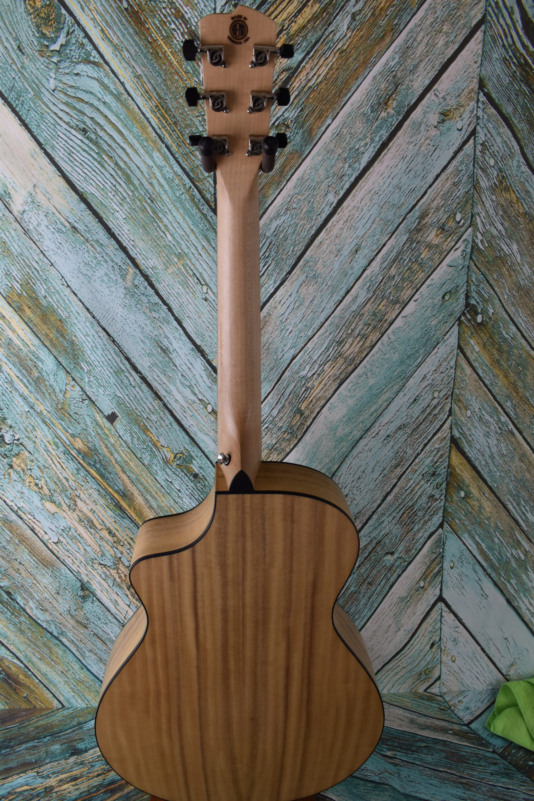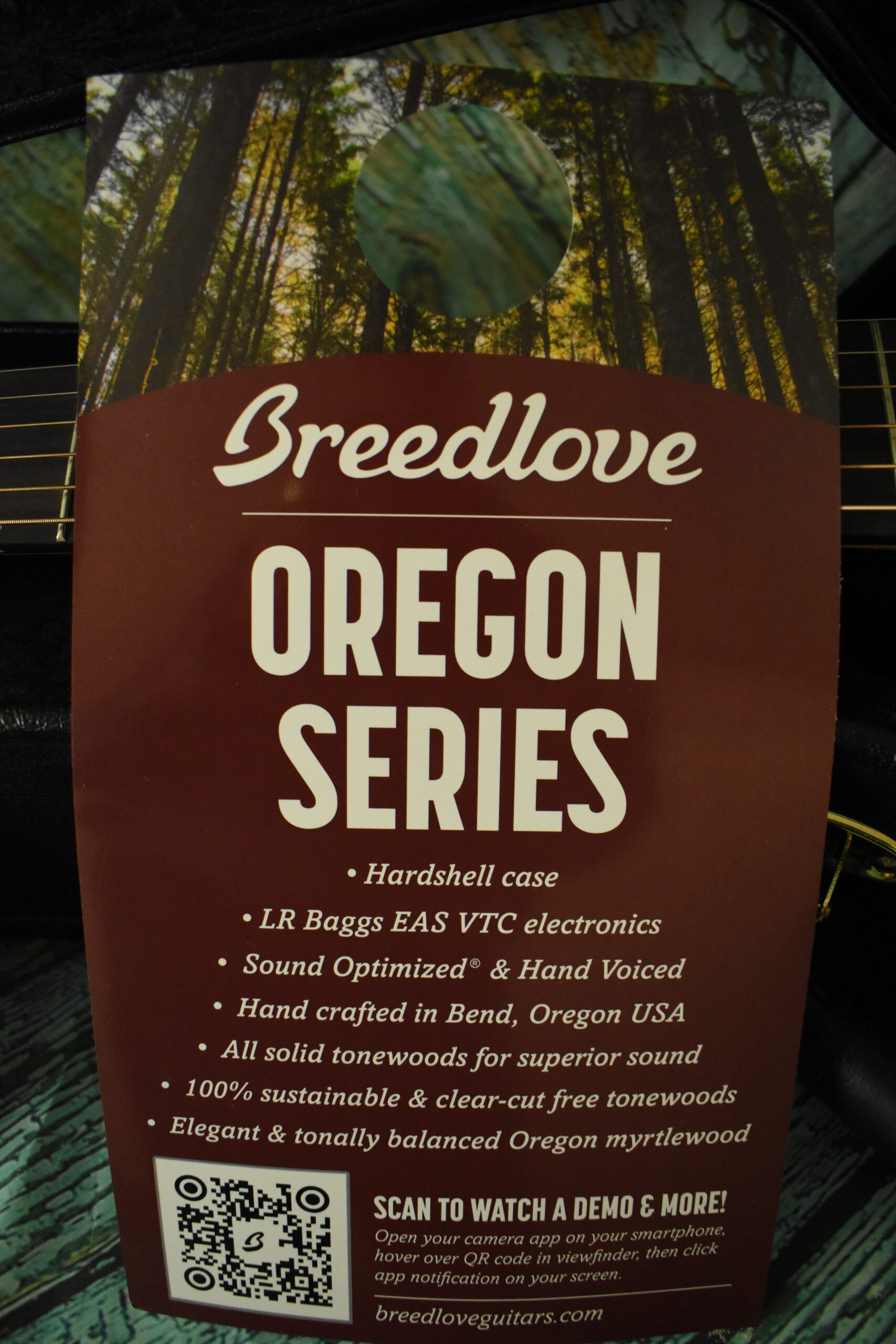 Made in Breedlove’s USA factory in Bend, Oregon, the Concertina CE Myrtlewood is a fingerpicker’s dream. The guitar's all-solid myrtlewood body produces a clear, articulate tone with a solid midrange, with a striking aesthetic unique to this Pacific northwestern tonewood. This instrument also features a shorter-than-average scale and a neck which joins the body at the 12th fret, both of which further warm the guitar’s tone and increase ease of play. LR Baggs electronics and a hardshell case help to make this guitar the complete package for anyone looking for a comfortable small guitar with rewarding tone.