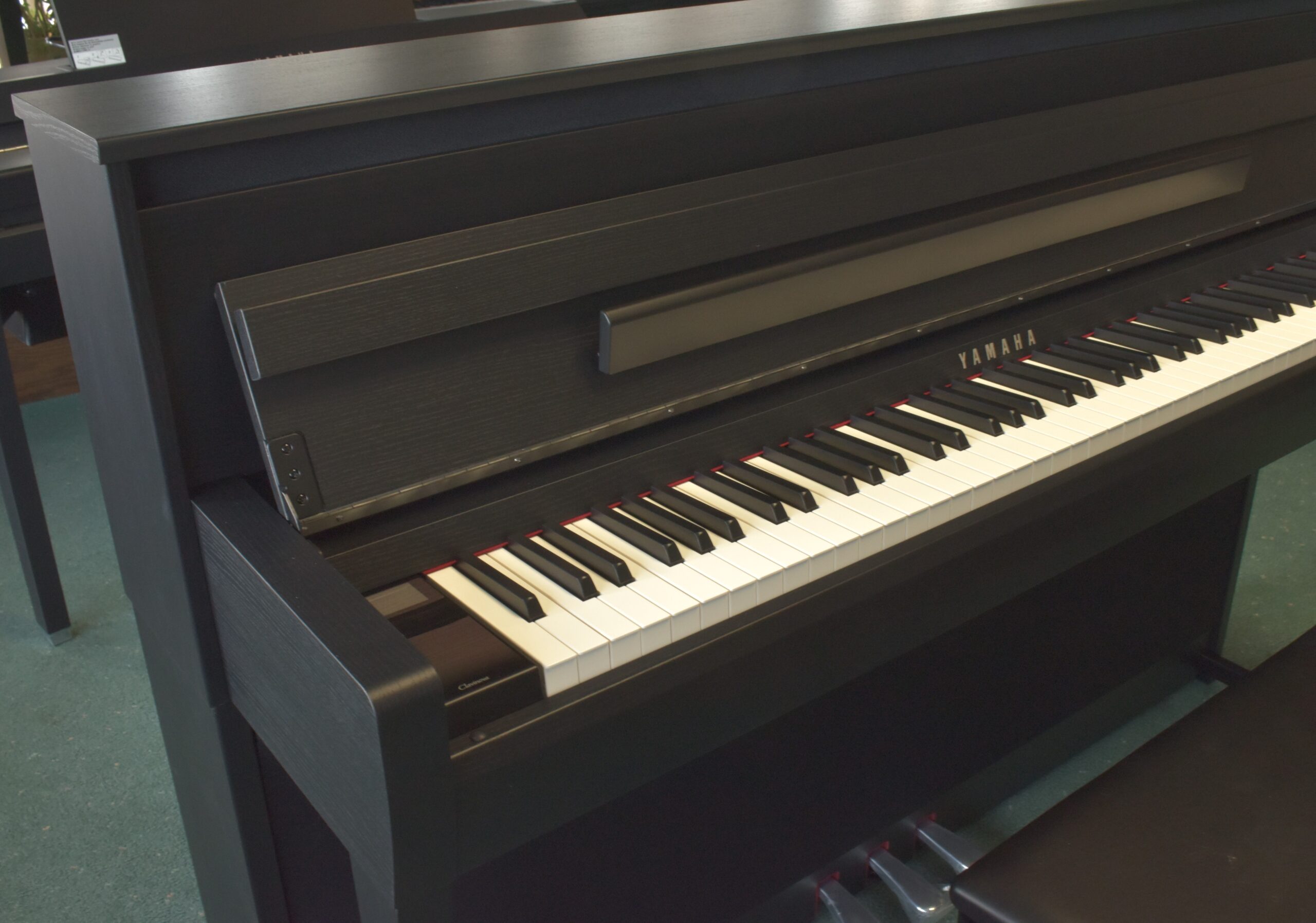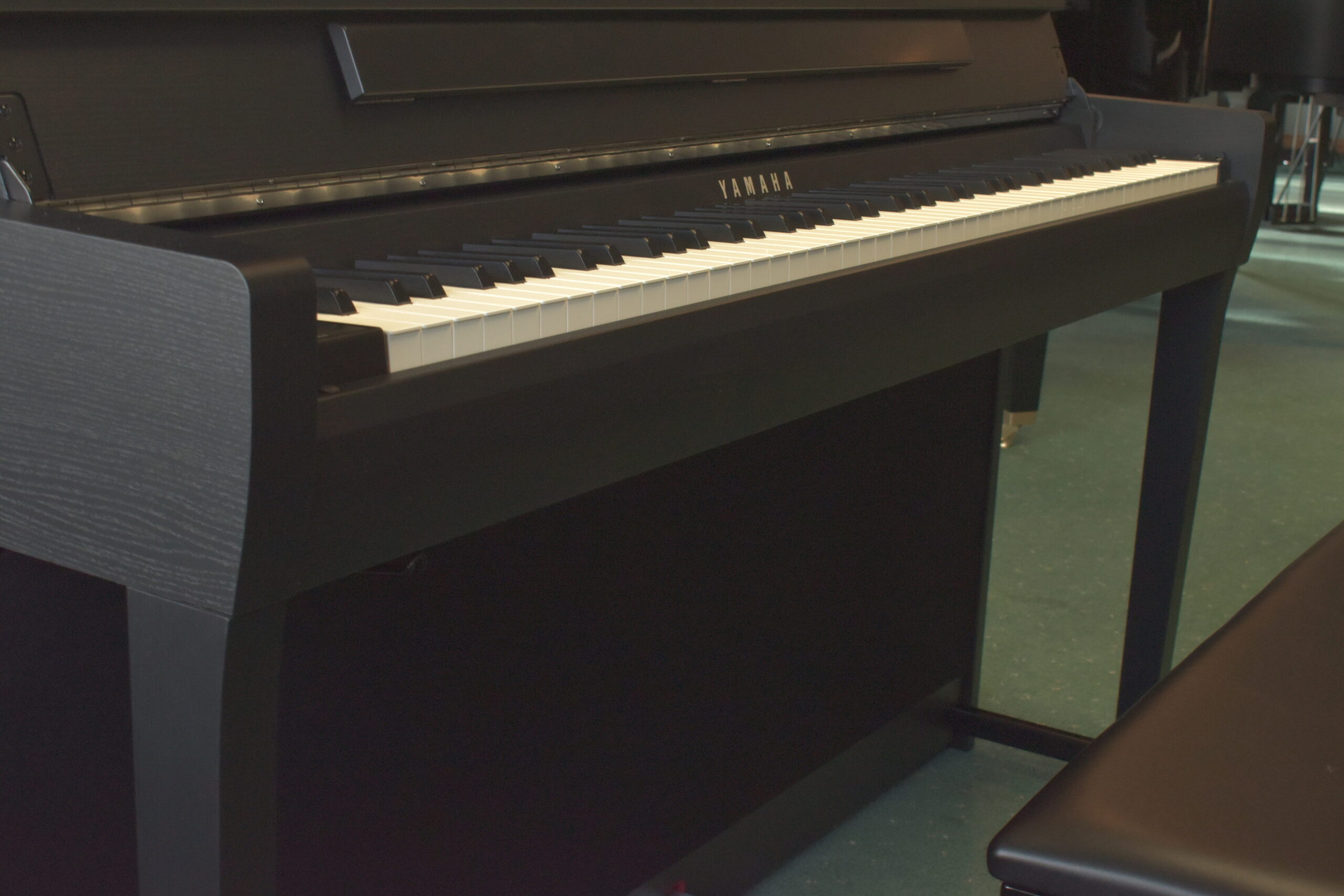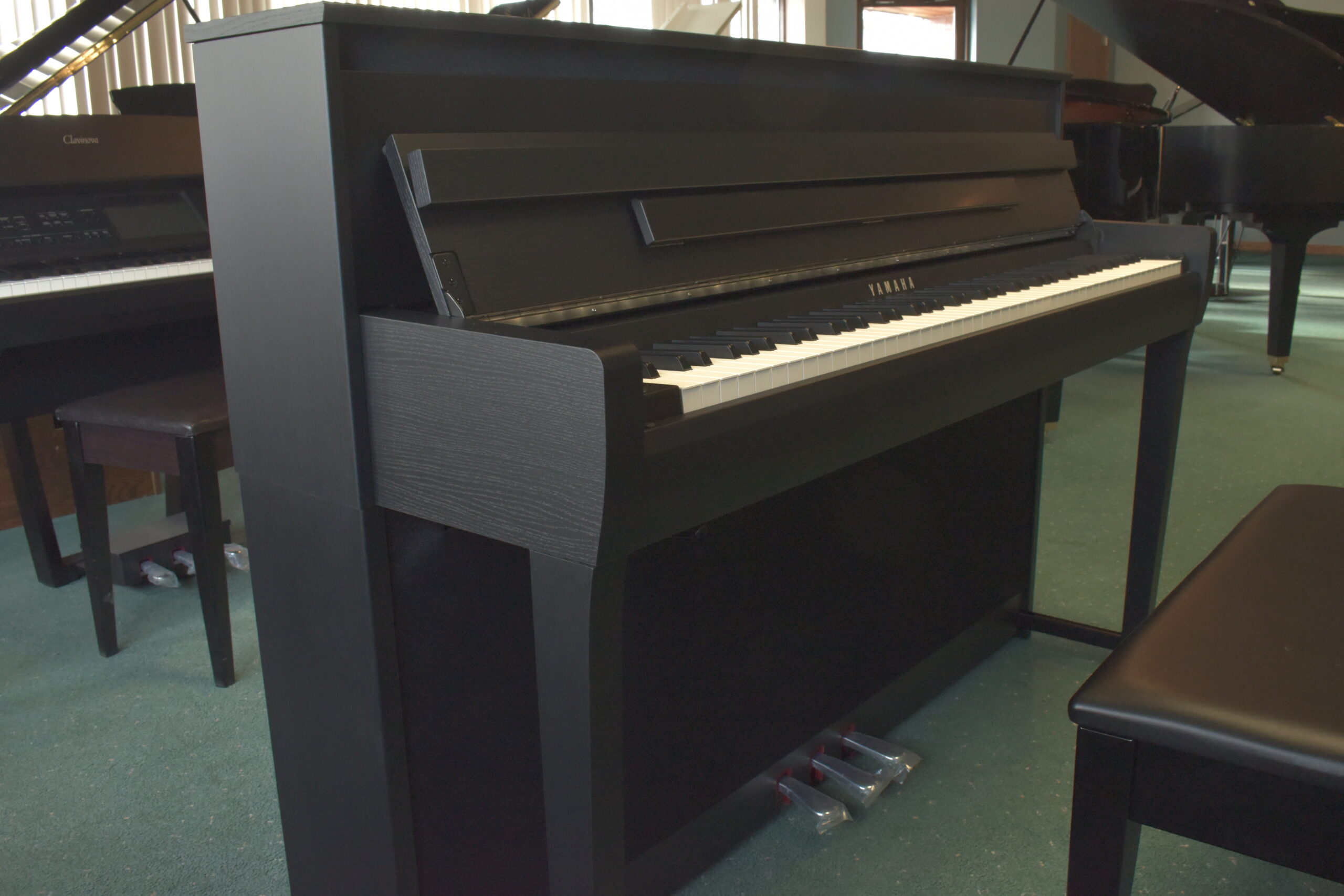 Yamaha’s top-of-the-line console Clavinova will satisfy the player with the highest level of discernment. Housed in an elegant 40” high cabinet, it presents the aesthetic of a console, yet is 6” less deep than an acoustic piano. It boasts a slow-close fallboard and a music rack design that echoes Yamaha’s flagship U1 professional upright. The wooden-key, linear-graded hammer action with counterweights allows the player unlimited levels of expression, control, and nuance. “Under the hood,” you’ll find 53 voices, including the world-class Yamaha CFX and Bosendorfer Imperial grand samples, drum kits, and 480 XG voices that foster your creativity. It also features six speakers plus a spruce cone speaker powered by 300 watts. Bluetooth connectivity.