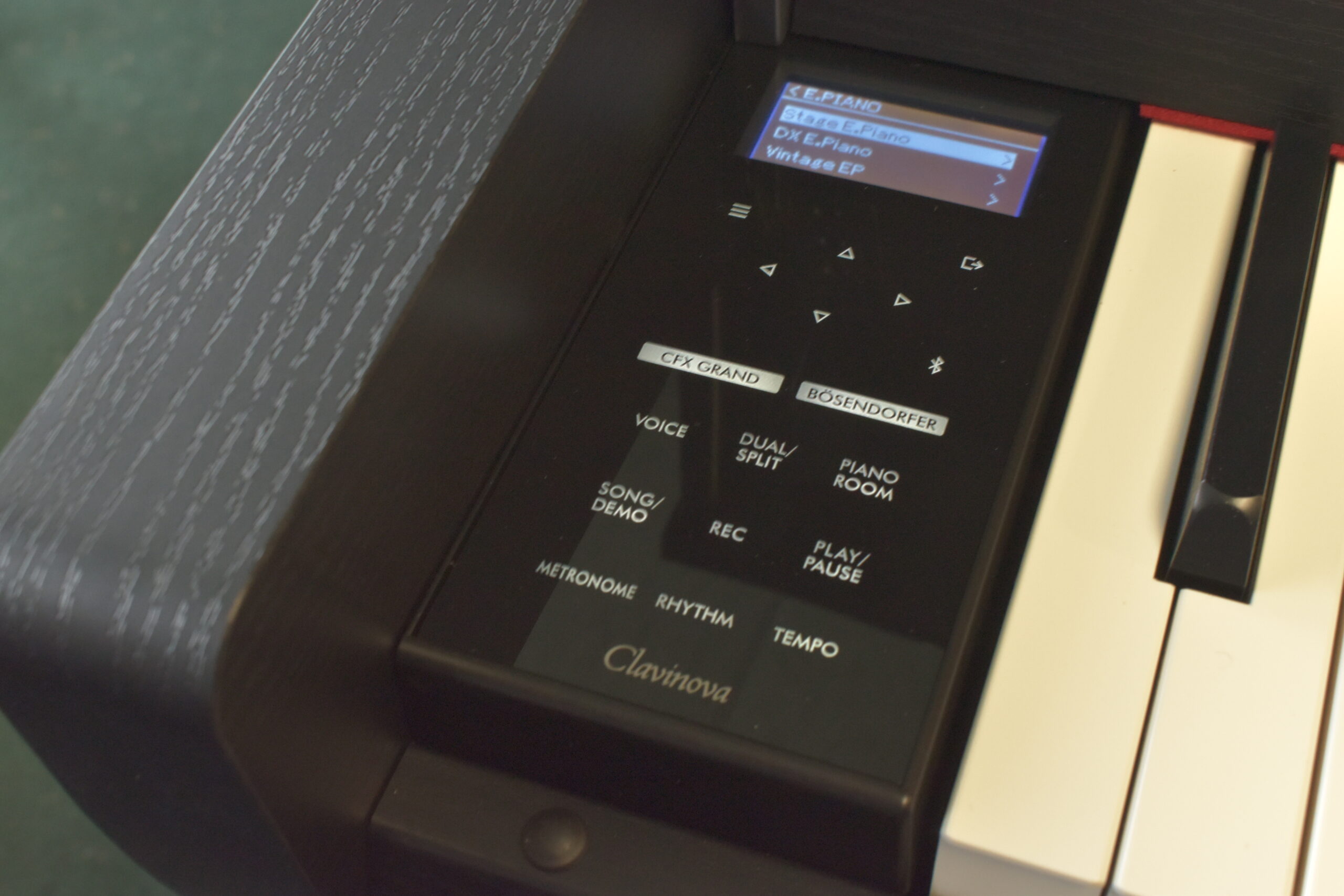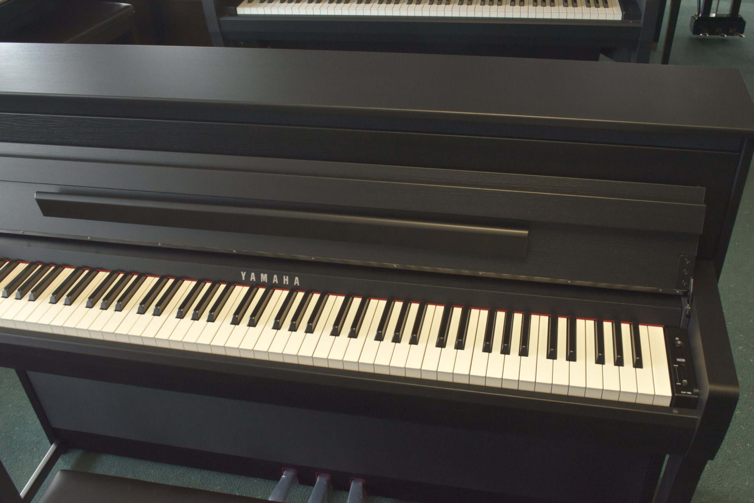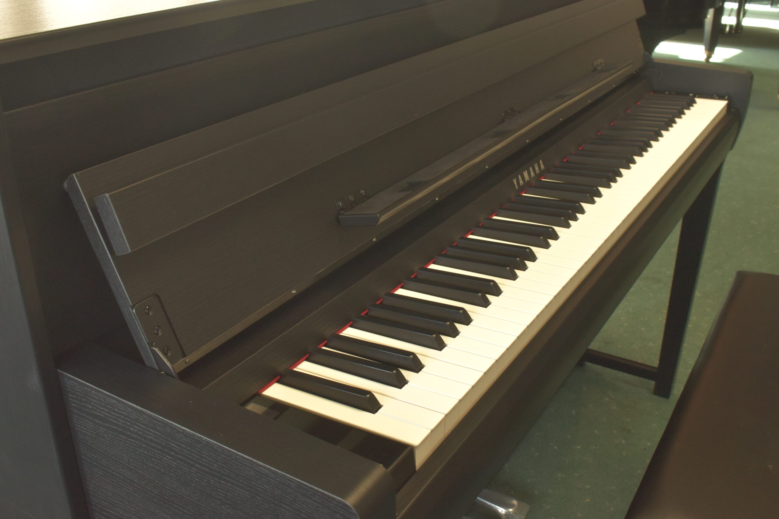 Yamaha’s top-of-the-line console Clavinova will satisfy the player with the highest level of discernment. Housed in an elegant 40” high cabinet, it presents the aesthetic of a console, yet is 6” less deep than an acoustic piano. It boasts a slow-close fallboard and a music rack design that echoes Yamaha’s flagship U1 professional upright. The wooden-key, linear-graded hammer action with counterweights allows the player unlimited levels of expression, control, and nuance. “Under the hood,” you’ll find 53 voices, including the world-class Yamaha CFX and Bosendorfer Imperial grand samples, drum kits, and 480 XG voices that foster your creativity. It also features six speakers plus a spruce cone speaker powered by 300 watts. Bluetooth connectivity.