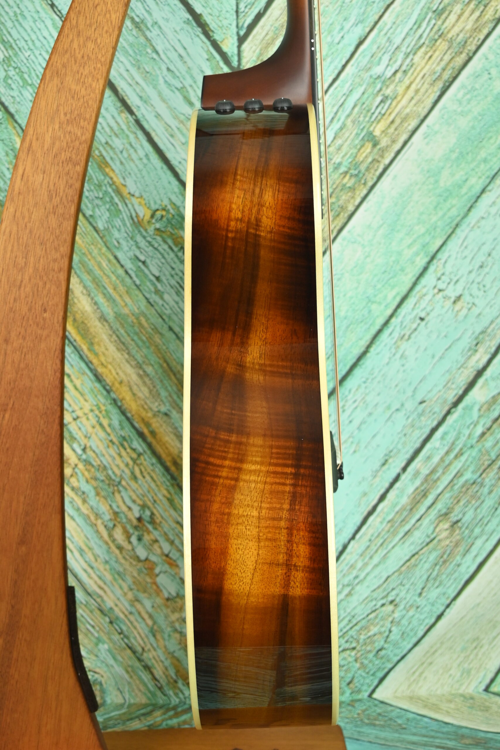 Built with an all-solid wood construction, this guitar features the rare and beautiful Hawaiian koa wood on the instrument’s top, back and sides. This particular serial number includes a AA-grade Koa top, a visual and tonal upgrade over the standard K24ce. Augmented by Taylor’s unique V-Class bracing pattern, this guitar sports Taylor’s iconic Grand Auditorium body shape, creating a versatile guitar which sounds as good as it looks.